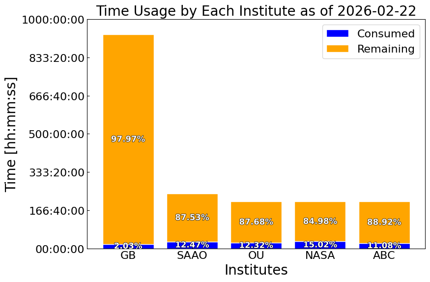 | Total | 1785:47:19 | 933:34:08 | 852:13:10 | 238:37:17 | 204:31:57 | 204:31:57 | 204:31:57 | 19:05:38 |